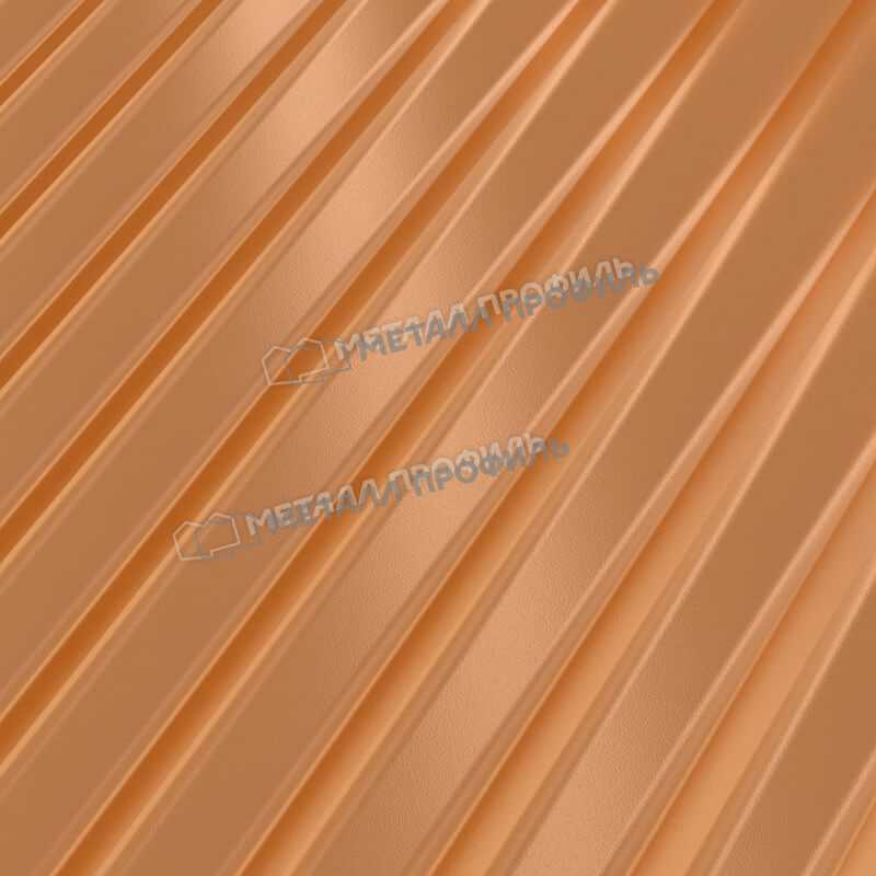 Профилированный лист МП-18x1100-B (AGNETA_Д-20-Copper-0,5) широко применяется в Колпино для обустройства забора. Изначально он представляет собой металлический оцинкованный лист с покрытием. Общая толщина металла с оцинковкой и защитно-декоративным слоем — 0.5 мм. Проходя процедуру холодного проката, сталь приобретает рисунок из ритмичных волн. Такая конфигурация придает профилю несущую способность.