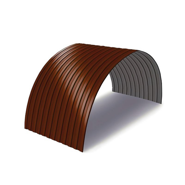 Арочный профнастил С15ПГ - это металлический окрашенный или оцинкованный профиль продольно - гнутой формы толщиной от 0.5 до 0.9 мм. и высотой гофры 15 мм. Такой профлист используется для крыш, веранд, навесов и других объектов аналогичного арочного дизайна. Он идеально подходит для сооружений, где необходимо создание формы крыши с нестандартной округлой формы. Продольно гнутый профлист С15ПГ можно гнуть не только наружу, но и внутрь это зависит от требования заказчика и конкретного проекта.