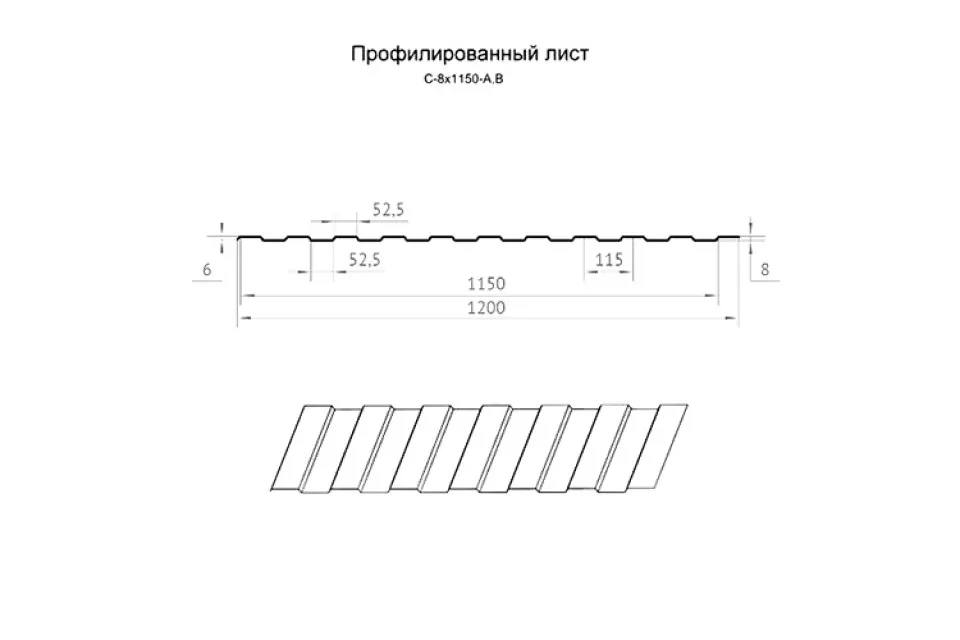 Профнастил С8-1150 – один из наиболее востребованных видов данной продукции. Его популярность обуславливается широкой сферой применения как в строительстве, так и производстве. Благодаря удобной рабочей ширине в 1150 мм и незначительной высоте волны – 8 мм, профнастил С8 с успехом может использоваться как для устройства кровли или ограды, так и для обшивки стен легких сооружений. Мы готовы поставить листы толщиной от 0,35 до 1,0 мм и длиной до 15м. А в случае необходимости – порежем его для Вас на композитные детали необходимой формы и размера. Цена на профнастил С8 начинается от 162 рублей.
